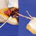 Cranial to the branches of the CSA to the bone, the teres minor and infraspinatus muscles are transected perpendicular to the muscle fibers to prepare for the osteotomy (◘ Fig. 8.11).