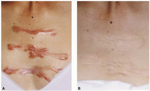 Research into keloid and hypertrophic scarring suggested that those with scar tissue 2 inches (5 cm) in length were particularly concerned, and that psychosocial inhibition was irrespective of the scar being immediately visible or hidden by clothing5 (see Fig. 20-2).