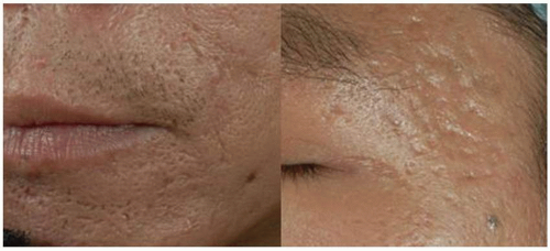 Patients who have nodulocystic acne with intense visible inflammation are more liable to develop scarring, particularly when there is a delay in the effective treatment of the problem. In contrast, scarring may occur early regardless of the severity of the acne. Thus, the early treatment of acne is of paramount importance to reduce the risk of scarring. Retinoids have been shown to reduce the inflammation in acne by the inhibition of leukocyte migration in the skin, and oral isotretinoin reduces the expression of MMP-9 and MMP-13 in the sebum of acne patients. This may prevent acne scar formation by normalizing the balance of MMPs and tissue inhibitors.19 In the practice of the authors, intervention with lasers can be considered 6 months after completion of isotretinoin therapy for acne.