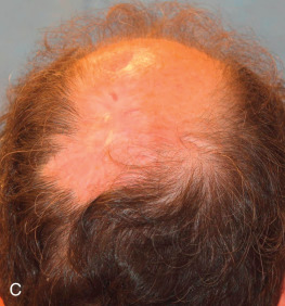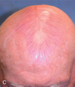 SIH is ideal for wounds where the surrounding skin has a normally shiny texture, where wound contracture will not result in anatomic distortion, and where the blood supply at the base of the wound is robust. Many factors can influence outcomes for SIH. Certain anatomic locations are ideal for second intention healing. On the temple, forehead, bald scalp, and pretibial leg, the shiny scars formed by SIH often heal with good results and minimal morbidity ( Fig. 3.3 ). SIH may be a good option for wounds of the hands and feet, as long as tendons are not exposed and the wound does not cross joints. The pink scars from SIH mimic the natural color and texture of the vermilion lip, and the cosmetic result is often highly aesthetic.