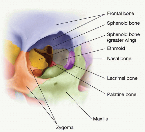FIG 1 • Key areas of the orbit include the junction between the zygomatic bone and greater wing of the sphenoid. The palatine bone should be used as a support shelf for the bone graft.