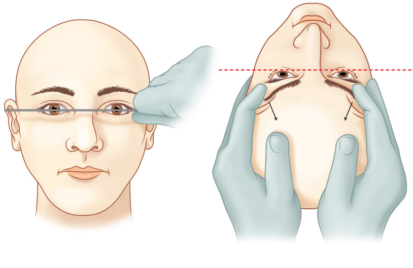 Normal naso-orbital surface anatomy. The naso-orbital valley displays complex and multidimensional surface anatomy. This is distinguished by a delicate soft tissue–bony interface where millimeters can make a significant difference in appearance.
