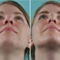 The nose was significantly deviated to the right with asymmetrical nasal bones, asymmetrical nostrils, and an asymmetrical tip. The anterior septum was overresected, with drooping of the tip and a slightly retracted columella. Concavity of both alae was also observed.