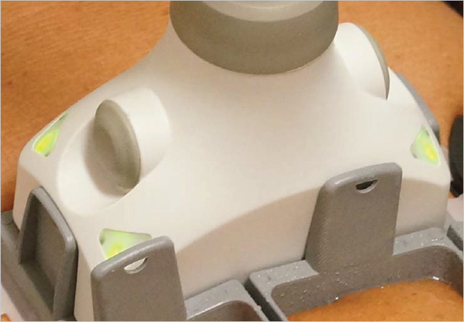 SculpSure supplies 4 independent flat panels, non-suction laser arrays for placement into the cradle system. Independent power control for each array allows for tailoring the treatment to patient comfort and desired improvement. The laser array snaps into the cradle with an audible click. Once in proper position, a visible indicator light turns green allowing treatment to commence (▶Fig. 3.4). If the array is not in proper contact with the treatment area, the treatment will abort. No laser safety eye protection is required as the laser will not function unless the proper contact between the laser array and the treatment area is established and maintained.
