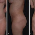 After marking the desired treatment area, laser array cradles are placed over the treatment site to permit maximum coverage of the region (▶Fig. 3.3). The laser cradles are secured in position using the adjustable belt system. Adequate “pillowing of the fat” into the laser cradle will ensure proper contact of the laser array with the tissue to be treated (see ▶Fig. 3.3). Lux lotion is applied to the skin to provide uniform contact between the skin and the laser window. The laser array has a water-cooled sapphire window at the point of skin contact. Surface cooling provides additional patient comfort to the sensory nerve-rich skin during treatment as well as protection against superficial thermal injury.