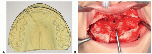 Segmentation for a two-piece Le Fort is routinely between the maxillary central incisors in a midsagittal osteotomy (FIG 3).
