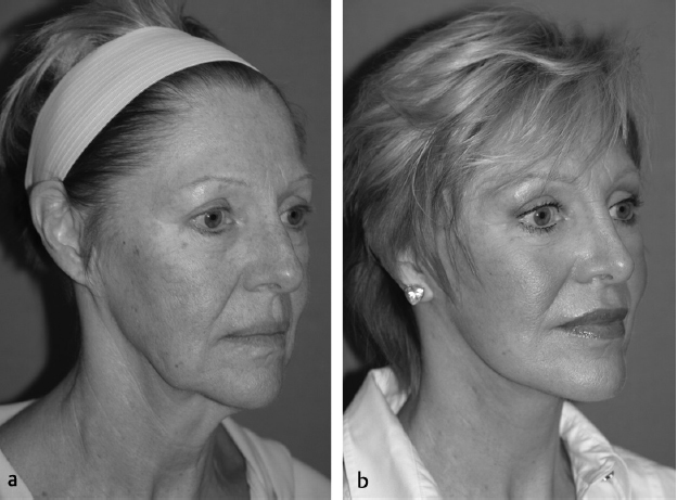 Fig. 11.1 (a) Prior to collagen injection. (b) After collagen injection.