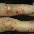 Voriconazole , a triazole antifungal , is effective at treating several infections, often those caused by Aspergillus spp. , but it is also active against Scedosporium, Fusarium, and Candida spp. [7, 8]. The Food and Drug Administration approved voriconazole in 2002, and since then many reports of photosensitivity and phototoxic reactions have surfaced. In 2010, a review of eight patients with 51 SCC after initiation of voriconazole therapy included two pediatric patients who each had a history of cord blood hematopoietic cell transplant and developed AK, SCC in situ, and SCC [9]. Voriconazole phototoxicity has several clinical appearances. The acute phase can include erythema (Fig. 11.2), blistering, erosions, scaling/desquamation, cheilitis, hyperpigmentation, and lentigines [9–12]. Long-term sequelae include lentigines, ephelides, atrophy, actinic keratoses (Fig. 11.3), and skin cancers, most often SCC [13]. Additionally, voriconazole phototoxicity can mimic a flare of GvHD [10]. SCC has been reported in pediatric cancer patients and HSCT recipients [9, 13–15], POTRs [13, 16], and immunosuppressed pediatric patients [13, 17]. The mechanism leading to voriconazole-associated SCC is unclear. Recent work proposes an increased risk for voriconazole-associated SCC in patients with ultrarapid metabolism of the drug, seen in the CYP2C19*17/*17 genotype [18].