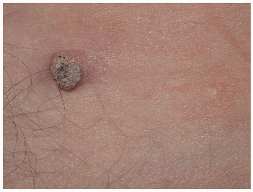 “Skin colored” refers to those lesions whose color is of the same hue as the patient’s surrounding normal skin. Thus, in a darkly pigmented person, skin-colored lesions would be brown. Likewise, skin-colored lesions on a pink or red mucosal surface will also be pink or red. Skin-colored lesions may be benign or malignant.