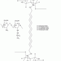 • The ‘sandwich’ model (Bouwstra et al. 2000, 2001, 2002) describes alternating crystalline and liquid phases within the LPP. The repeating unit in this model comprises three lipid layers, namely, a middle, narrow liquid phase sandwiched between two adjacent, broad crystalline phases. Ceramides are packed into a crystalline lattice within the broader phases, but the long linoleate moieties in ceramide 1 and ceramide 4 protrude beyond the thickness of the crystalline phases into the space between the crystalline phases to form the narrow liquid phase with cholesterol. It is postulated that the liquid phase represents the main permeation pathway within the LPP. In this model, ceramides are typically depicted in the ‘hairpin’ (or ‘tuning fork’) conformation (Fig. 1.2).