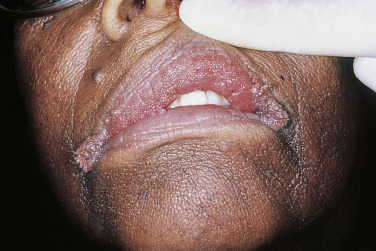 Acrokeratosis paraneoplastica, or Bazex syndrome, is by definition always associated with an underlying malignancy. Acrokeratosis paraneoplastica develops progressively through three stages. The initial cutaneous signs consist of erythematous to violaceous, poorly defined macules with a fine adherent scale that occur over the acral areas of the body, including the fingers, toes, ears, and nose. A paronychial reaction is also common. In the second stage, skin lesions begin to generalize and keratoderma develops. In the third stage, the eruption generalizes but still maintains its violaceous nature and predilection for acral involvement ( Fig. 17-3 ). The three stages of the cutaneous disease parallel the growth and spread of the underlying tumor. Bazex syndrome is more common in men, and the underlying tumors are most often squamous cell carcinomas of the upper aerodigestive tract; however, a variety of other solid malignancies and lymphomas have also been associated. Therefore, a comprehensive head, neck, and pelvic examination with laboratory, radiographic, and endoscopic evaluation is needed. As with acanthosis nigricans, the course of cutaneous involvement in Bazex syndrome typically parallels the course of the tumor, thereby fulfilling the criteria to consider it a marker of internal malignancy.