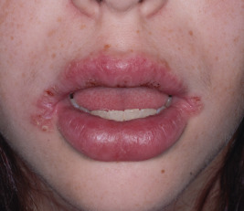 The cause is unknown. Attacks usually start during adolescence with paralysis of a facial nerve, repeated severe headaches, edema of the circumoral tissue of the upper lip or cheeks, and occasionally edema of the gingivae, sublingual area, and lower lip. The edema is usually asymmetric, but the whole face may be involved. Associated signs include hyperhidrosis, loss of taste, and visual impairment. Biopsy specimens show noncaseating granulomas in an edematous stroma that may be indistinguishable from the granulomas of Crohn disease, and the relationship between Crohn disease and OFG remains controversial. In one systematic review, gastrointestinal signs were present in 26% at time of OFG diagnosis, and 40% of children received a concomitant diagnosis of Crohn disease, with OFG preceding signs of Crohn disease in more than 50%. Concomitant perianal disease and a family history of Crohn disease are associated with a higher risk of Crohn disease.