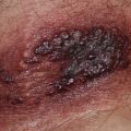 Fig. 6.3 Atopic dermatitis, childhood. Acute to subacute lesions in the popliteal fossa. Courtesy, Julie V Schaffer, MD. From Bolognia JL, Schaffer JV, Duncan KO, Ko CJ. Dermatology Essentials, 1e. Philadelphia: Saunders, 2014, with permission.