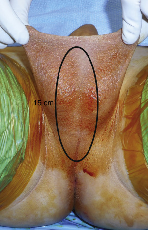 Hair removal, whether by electrolysis or laser, is completed as thoroughly as possible from the penile shaft and central perineum and scrotum ( Fig. 5.5 ) before penile inversion vaginoplasty. Preoperative depilation helps to prevent intravaginal hair growth. Adequate hair removal can take 3 to 6 months to complete and should not be performed within 2 weeks of surgery.