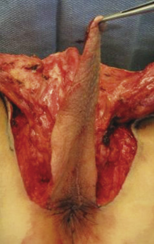 Full-length scrotoperineal flap (± skin graft)