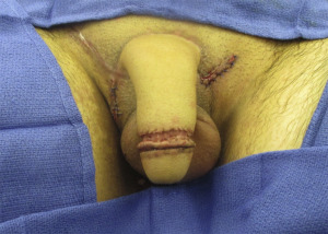 A successful surgical result involves the creation of a natural-appearing vagina and mons pubis that are sensate and functional, including removal of the stigmatizing scrotum, creation of feminine-appearing labia majora and minora, construction of a sensate neoclitoris, and development of adequate vaginal depth and introital width for intercourse. Additional desirable qualities include a smooth, graded, and contiguous appearance to the labia majora, a moist appearance to the labia minora simulating the vestibular lining in natal females, clitoral hooding, and lubrication for intercourse ( Box 4.1 , Fig. 4.4 ).
