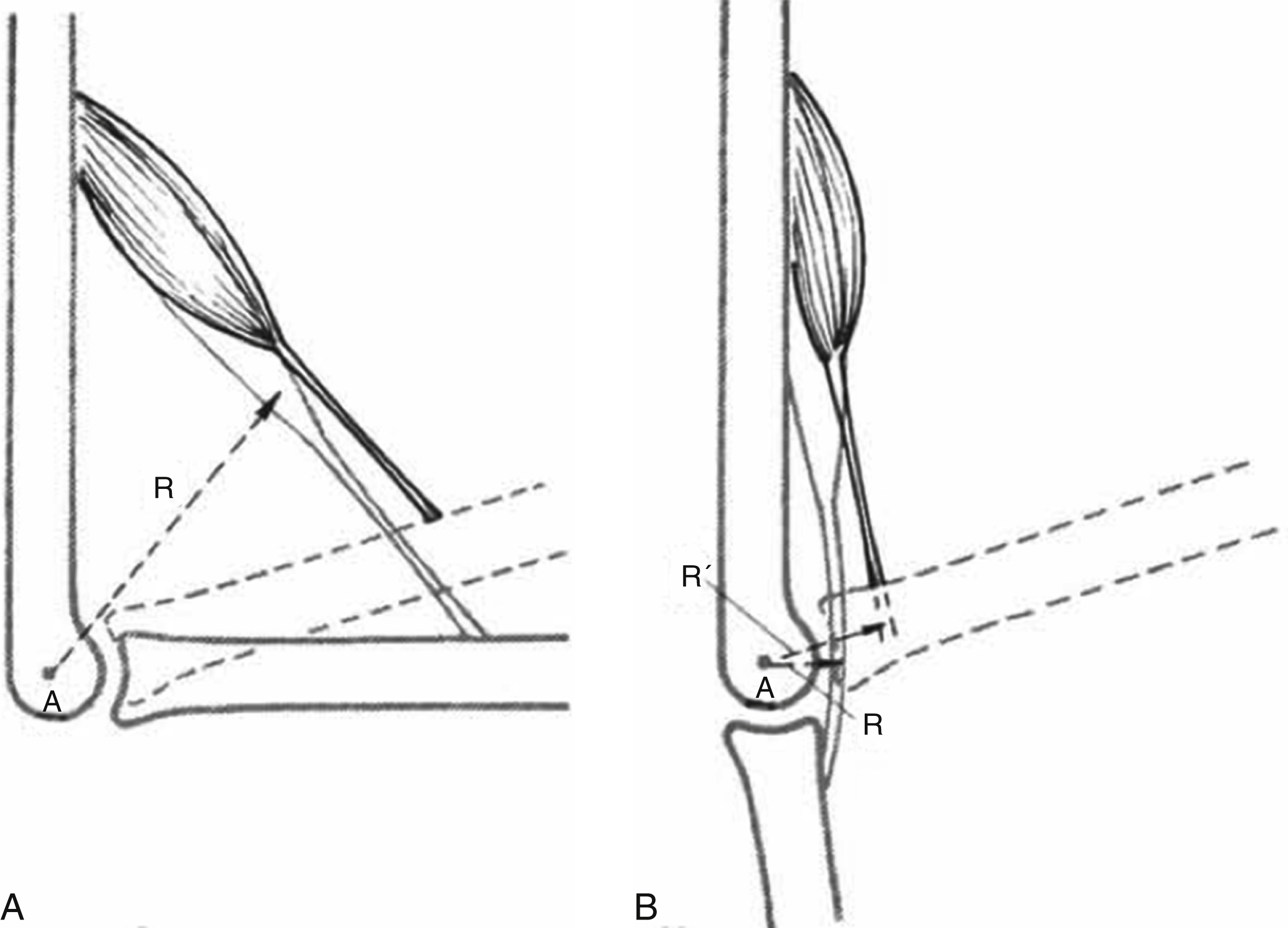 The power, or force-generating ability, of a muscle is proportional to its physiological cross-sectional area (PCSA). Leverage is a measure of the mechanical advantage of a muscle. It is determined by the moment arm, which is the perpendicular distance from the target joint’s axis of rotation to the line of pull of the muscle ( Fig. 49.2 ). It should be noted that the moment arm may vary depending on joint position, and any measurements should be taken with the joint in a useful position. Muscles with a larger moment arm have relatively more leverage, and hence exert greater torque. For an MTU to be useful for a transfer, it must have adequate power and leverage to move the target joint.
