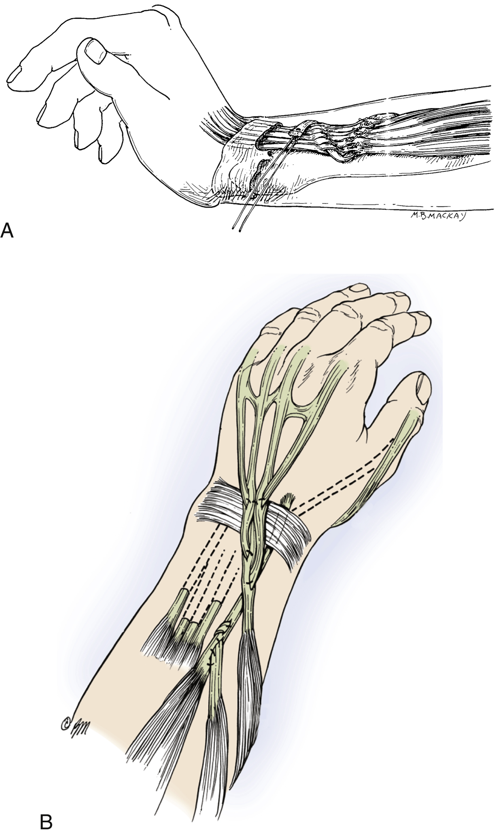 | Metacarpophalangeal joint extension | FCR → EDC (Starr, Brand, Tsuge) | FDS → EDC (Boyes, Chuinard) FCU → EDC (Jones) |