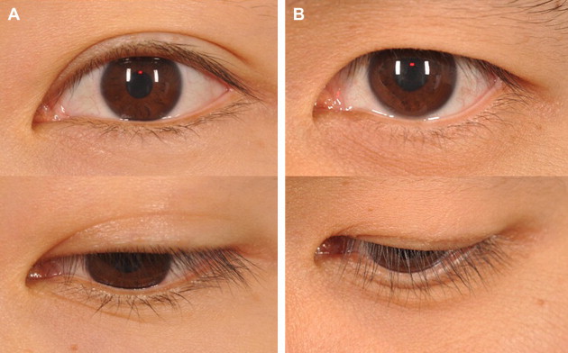 ( A ) An Asian eyelid with an apparent double eyelid fold. ( B ) An Asian eyelid with an inner eyelid fold and low-lying crease.