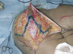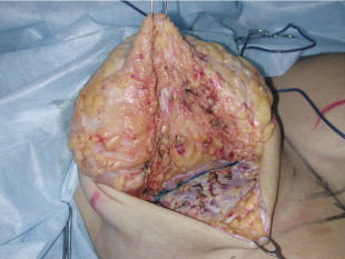 This technique is indicated when there is an acceptable volume of good skin quality, when the amount to be removed is less than 1000 g and when the areola elevation is no more than 10 cm. During the surgery I follow the penciled line and the estimation of the glandular removal I planned before surgery. This is especially important when there are asymmetries. As there is a great variety of breast hypertrophies, before surgery, I also plan from which part of the breast I have to remove more tissue and, when there are difficult asymmetries, I draw a draft of the future areas to be removed as a surgical guide.