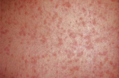 Penicillins, sulfonamides, cephalosporins, and antiepileptics are the most likely categories of drugs to cause exanthematous reactions. Viral exanthems tend to be indistinguishable from exanthematous drug eruptions and more commonly occur in pediatric patients. Eosinophilia favors a diagnosis of drug reaction; biopsy is generally not helpful. More severe drug reactions may be heralded by facial edema or marked eosinophilia, as in systemic hypersensitivity syndrome, or by mucous membrane lesions and dusky skin, as in SJS or toxic epidermal necrosis.