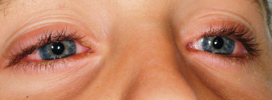 Stevens–Johnson syndrome. This boy shows early ophthalmic involvement with conjunctival injection, eyelid edema, erythema, and exudative crusting.