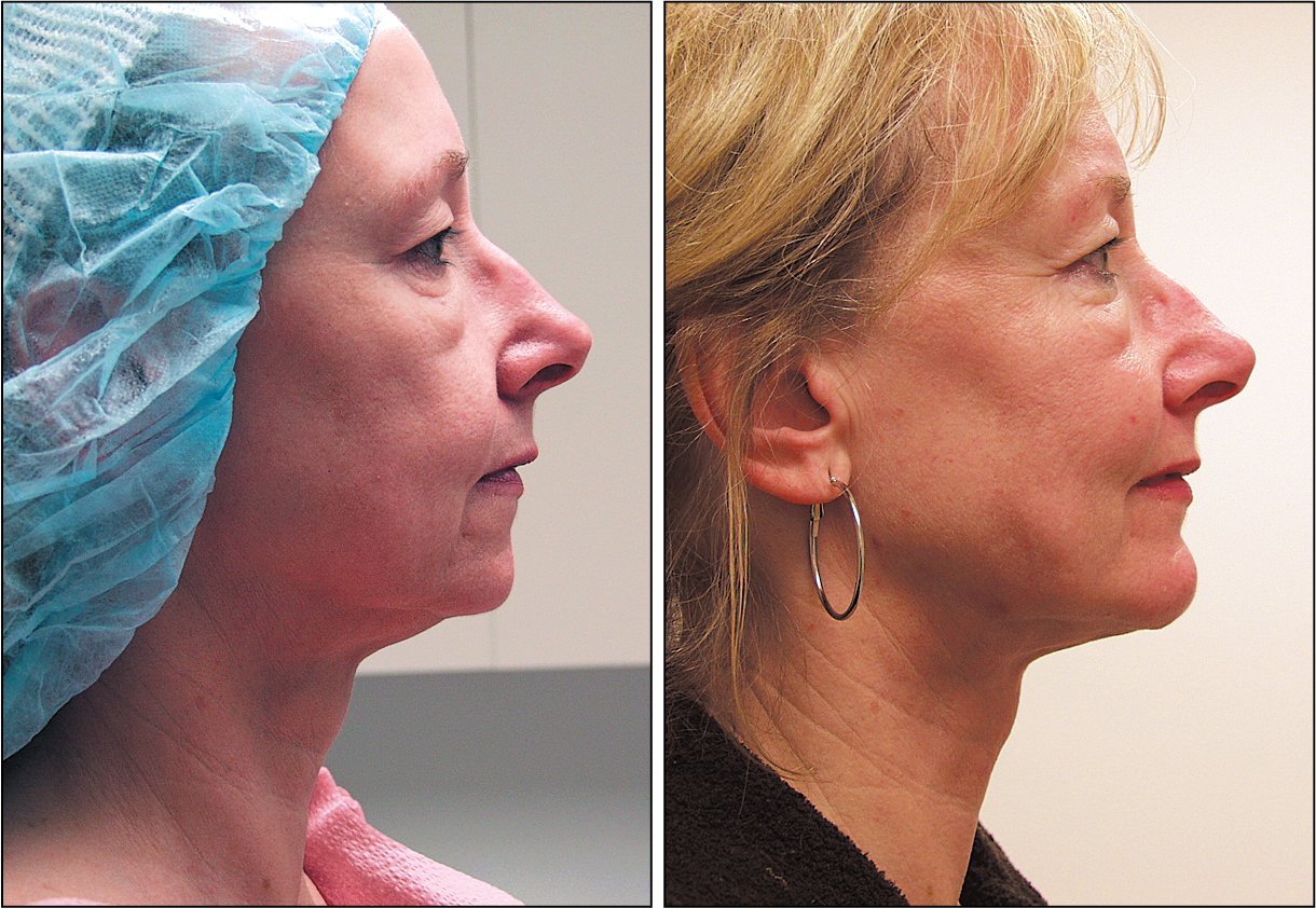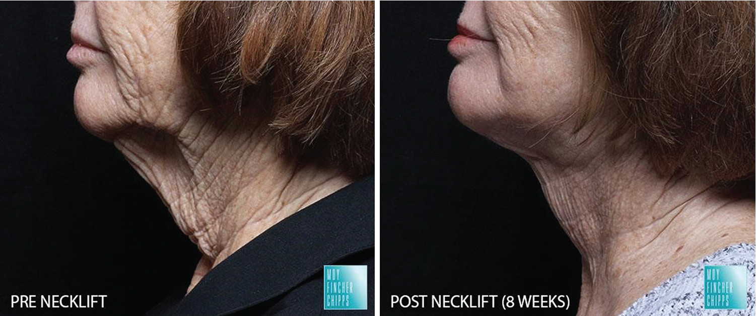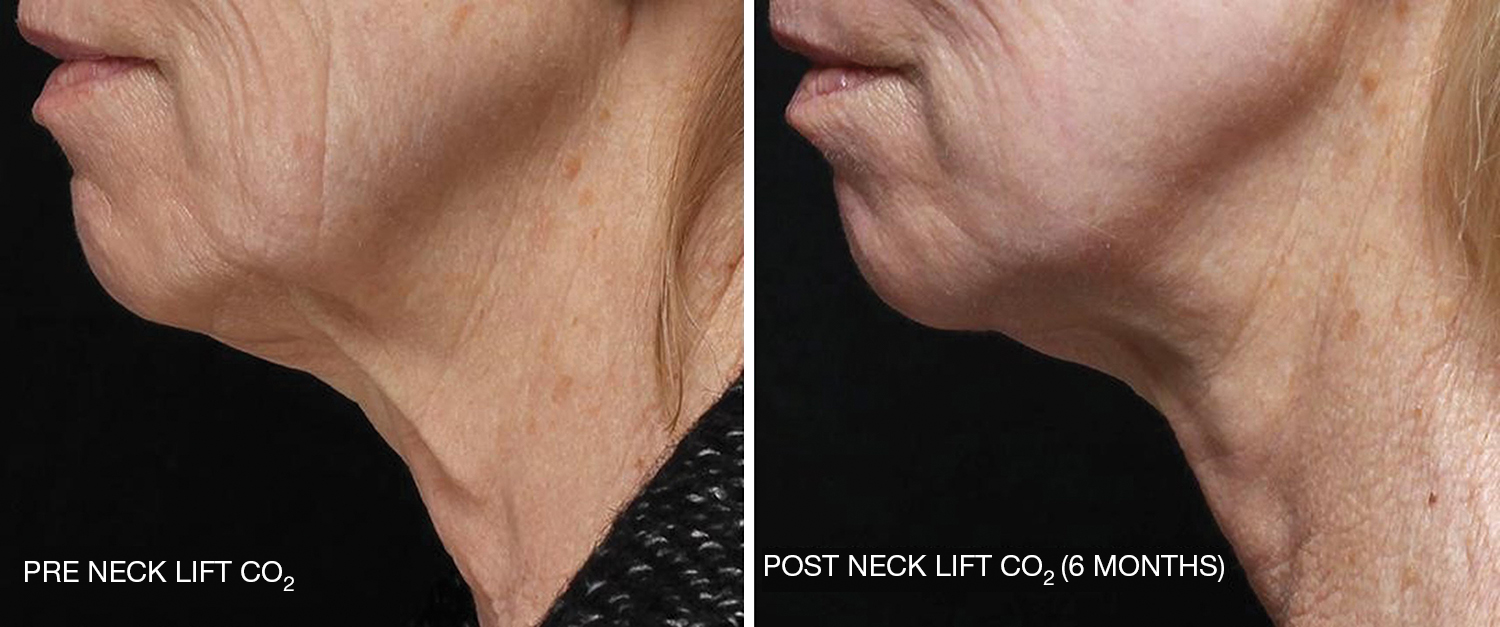 A neck lift is one of the main procedures done to restore a youthful neck. In the author’s clinical practice, the neck lift is a common cosmetic procedure that does not require general anesthesia, extensive post-operative care, or significant downtime. Oftentimes, patients seek cosmetic surgery for both their face and neck. In these instances, the author will frequently discuss the benefit of combining a fractional carbon dioxide (CO 2 ) laser with the neck lift to enhance cosmetic outcomes ( Figs. 8.1 and 8.2 ). Fractional CO 2 laser resurfacing combined with a neck lift replaces the need for a full facelift in most cases. The CO 2 laser has the ability to tighten the jowls and lower face, working synergistically with the tightening that comes with the neck lift. Patients always want to look natural, and these two procedures ensure that they will.