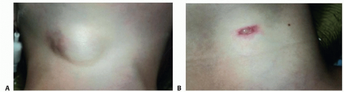 With a history of infection, there may be signs of an abscess or sinus formation with discharge.