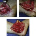 A lateral transfibular approach to the ankle and hindfoot can be used for correction of severe deformity. Although this distal fibulectomy will devascularize the lateral ankle, an alternative often is unavailable for correction of severe deformity, particularly when the ankle is angulated and in varus and the fibula is prominent. The incision is made vertically, directly over the fibula, extending down distally over the sinus tarsi toward the inferior aspect of the calcaneus. The sural nerve must be identified and then retracted inferiorly with the peroneal tendons. A fibulectomy is performed with an acetabular reamer, which is used to completely denude and decorticate the fibula. The reamings that are obtained are preserved for later use as bone graft material (Figure 38-5).