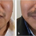 Stronger and bigger muscles at glabella in men required more units of neurotoxin.31 Low-set eyebrows in men required careful assessment of frontalis muscle action before neuromodulator injection to prevent potential eyebrow droopiness. In the heavy low-set male patient, consider neurotoxin injection at the glabella and the lateral orbicularis; avoid forehead injections (Fig. 2.4).