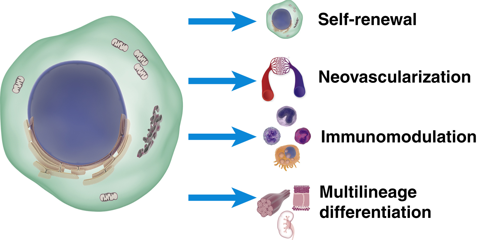 Stem cells are long-lived cells that are capable of a number of important functions, including the ability to form multiple different tissue types, encourage or participate in new blood vessel formation (neovascularization), immunomodulation and self-renewal. Progenitor cells are usually daughters of stem cells that are already committed to a given cell fate (not multipotent) but are capable of both self-renewal and reconstituting their given cell/tissue type. Endothelial progenitor cells (EPCs) are a common progenitor cell type used in tissue engineering because of their putative ability to develop into vasculature/endothelial cells. Combinations of stem cells and endothelial progenitor cells are often used to support the coevolution tissues with their supporting vasculature.