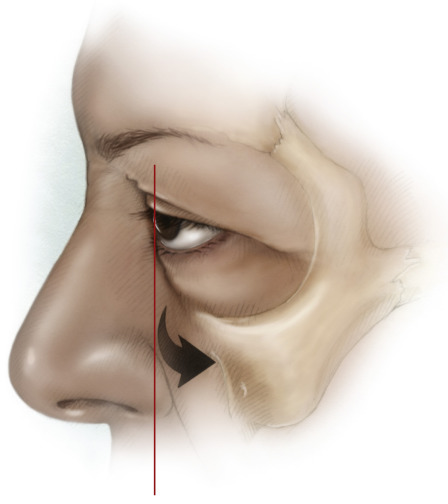 The negative vector is present when the globe projects anterior to the inferior orbital rim. This may be due to several factors including thyroid-related orbitopathy, myopia and maxillary retrusion. The risk of eyelid malposition is high in this group of patients. Midfacial elevation such as orbitomalar suspension or an inferior orbital rim implant may be beneficial.