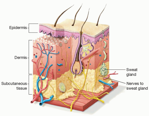The greatest concentration of eccrine (sweat-producing) glands is in the palms, axilla, and soles of the feet, where only about 5% of the glands are normally active at any one time.1