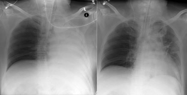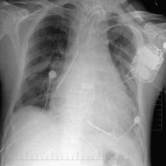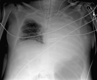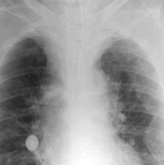 Complications of intubation ( Figs. 25-1 to 25-10 ) and ventilation that are apparent on a chest radiograph are often potentially life-threatening and should be excluded on every radiograph, both immediately following intubation and with each subsequent radiograph. These possibilities are listed in the following sections.