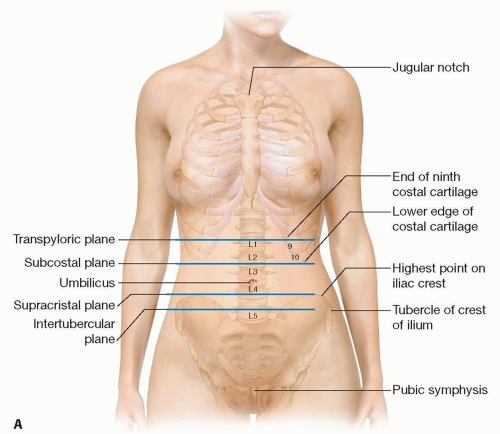 The umbilicus is generally described as a depressed circular indentation approximately 1.5 to 2 cm in diameter positioned in the midline of the abdomen at the level of the superior iliac crests2 (FIG 1A).