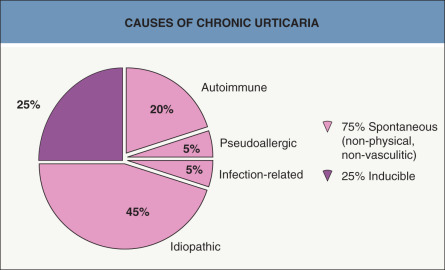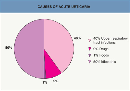 It is often difficult to know the exact pathogenesis of individual cases of urticaria, and many cases remain idiopathic after evaluation. See Figs 18.3 and 18.6 .