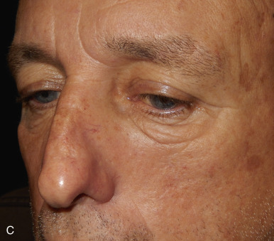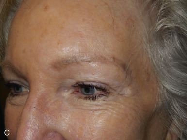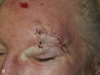 (A–C) A traditional V-Y flap is used to advance the lateral brow and create a normal-appearing brow postoperatively.