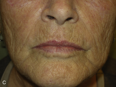 (A–C) V-Y flaps are useful in upper lip reconstruction to replace individual subunits and may be combined with other flaps to ensure neutral wound position upon healing.