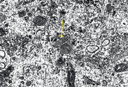Ultrastructural visualization of a rod-shaped Weibel–Palade body (WPB; arrow) within the cytoplasm of a human endothelial cell.