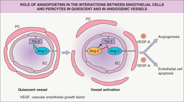 Role of angiopoietins in the interactions between endothelial cells and pericytes in quiescent and in angiogenic vessels.