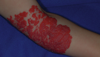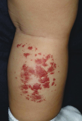 Corticosteroids are the traditional mainstay of therapy for IHs requiring treatment. They are most often used in the oral form, although both intralesional and topical preparations may be useful. Intralesional corticosteroids are useful for localized lesions. Several injections may be necessary, and periocular lesions should be treated only by a physician experienced in their administration, given the possibility of embolization of corticosteroid particles and permanent vision loss. Topical corticosteroid therapy with clobetasol (a potent, class 1 topical steroid) may be useful for localized IH. In the authors’ experience, this therapy is most useful for macular or very thin plaque hemangiomas in the early proliferative stage. This medication should be used cautiously with attention to the risks of atrophy, ocular toxicity, and adrenal suppression.