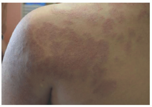 FIGURE 25-11. Tufted angioma on the left upper extremity in a 10-year-old female.