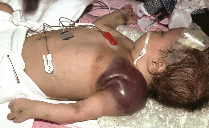 Patients with numerous cutaneous lesions (diffuse neonatal hemangiomatosis) are at increased risk for involvement of internal organs ( Fig. 32.3 ).