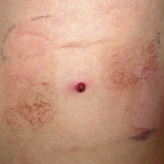 Thrombosed tufted angioma in a patient who developed Kasabach-Merritt syndrome.