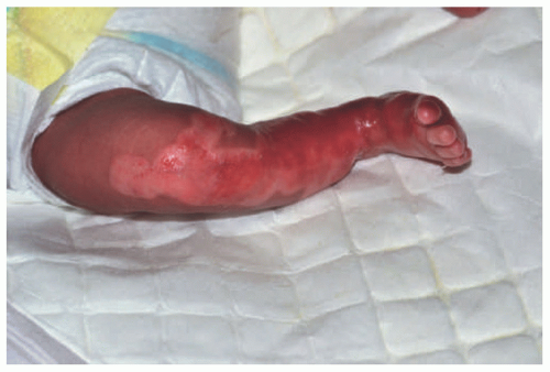 FIGURE 4-11. Aplasia cutis. Congenital absence of the skin can be present in multiple forms of epidermolysis bullosa. (Courtesy of Kristen Hook, MD.)