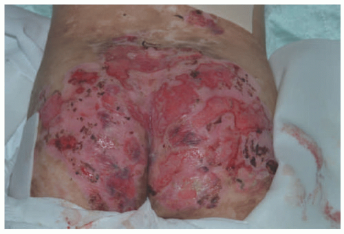 FIGURE 4-13. Recessive dystrophic epidermolysis bullosa, generalized intermediate subtype, involving the buttocks. (Courtesy of Kristen Hook, MD.)