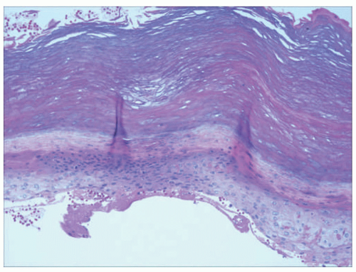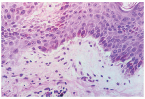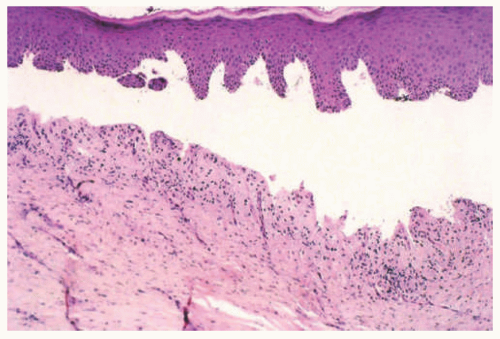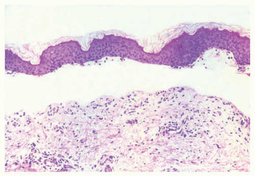 EBS is, by definition, an intraepidermal process, and intraepidermal blister formation is seen histologically (Figure 4-4).6