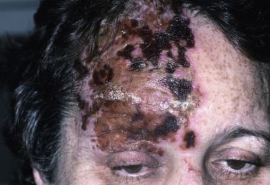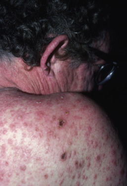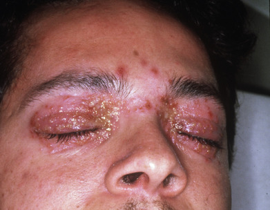 Finally, amid the many viral illnesses included in this portion of the atlas, human immunodeficiency virus deserves particular mention because it can cause a polymorphous primary eruption in the skin and is also associated with many other coinfections such as human herpesvirus 8 in the form of Kaposi sarcoma.