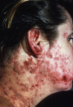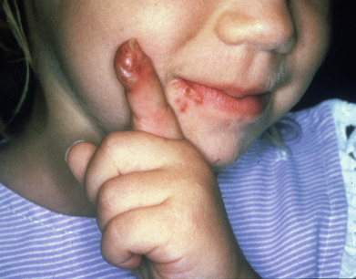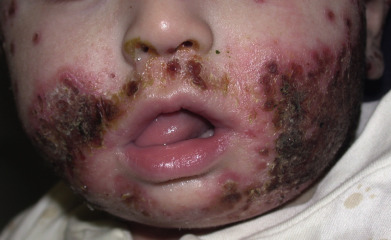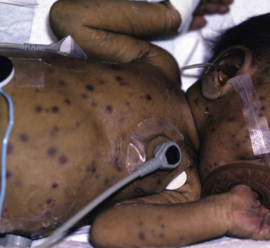The age of the patient can particularly affect the cutaneous manifestations of viral illnesses, including the extramedullary hematopoiesis presenting as purple nodules in congenital cytomegalovirus infections (“blueberry muffin baby”) or the classic “slapped cheek” appearance due to erythema infectiosum (parvovirus B19) seen most commonly in school-aged children.