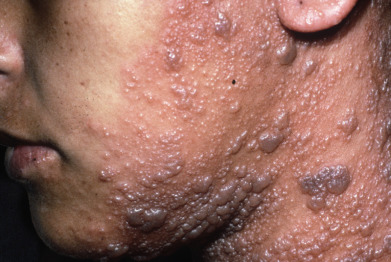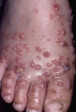 Uncommon viral infections are included, such as the zoonotic poxviruses like Orf that cause self-limited papulonodules, as well as even more exotic arthropod-borne viral infections such as Dengue and Chikungunya virus. Common viral conditions are included here as well, such as the dome-shaped, umbilicated, shiny papules of molluscum contagiosum and verruca vulgaris in its many forms secondary to human papillomavirus.